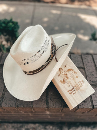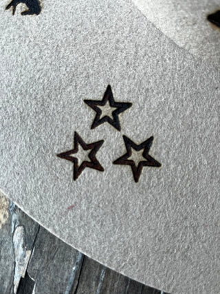 Stamp your hat with your story—choose from dozens of designs (letters A–Z, numbers 0–9, stars, horses, cacti, guns, and more).
